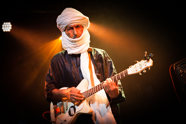 Terakaft [foto hieronder] is de volgende telg die in het kielzog van landgenoten Tinariwen al een tijdje de westerse muziekpodia afschuimt. Hun nummers zijn herleid tot de essentie, een ritmische melodie die het gros van de toearegbands kenmerkt, maar Terakaft laat de psychedelische escapades van bijvoorbeeld Mdou Moctar of Bombino achterwege. Het mooie aan Terakaft is dat het monotone karakter voor een soort van trance zorgt.