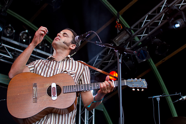 Nick Mulvey zal voor de meeste bezoekers die de afgelopen nacht in de Bolder of op het strand tot het gaatje zijn gegaan, het eerste optreden van de zondag zijn. De zon is eindelijk terug en het is op het Sportveld fijn ontkateren bij deze singer-songwriter, die op dit tijdstip gelukkig een stuk minder zwaar op de hand is dan Ben Howard een avond eerder op hetzelfde podium. Op het eerste gehoor veel kabbelend getokkel, maar de Brit speelt knap met de dynamiek tussen zijn gitaarspel en het volume van de ritmesectie en zelfs tijdens de solonummers weet hij de voorste helft van het veld stil te krijgen. Mulvey zal er – hopelijk – geen bierhallen mee uitverkopen, maar op deze zondagmiddag gaat er weinig boven de feelgoodfactor van een liedje als Cucurucu. (HV)