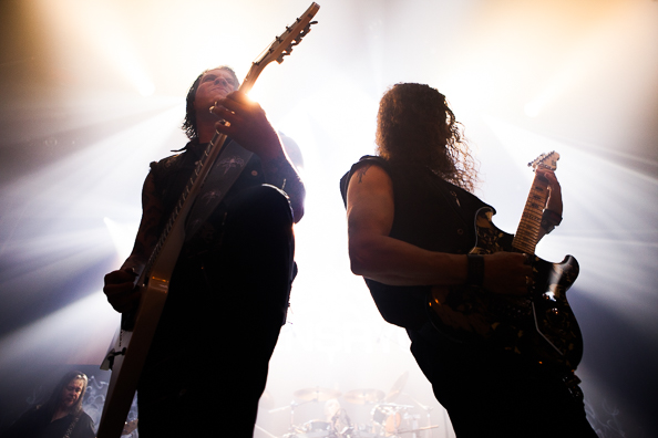 Ook vanavond bewijst Armored Saint [bovenste foto's], dat sinds 2010 serieus werkt maakt van een lang niet onaardige comeback, zich als een band die nog altijd op ontzettend veel goodwill kan rekenen, en dat zelf ook met speels gemak afdwingt. Na een wat stroef begin, waarbij bassist Joey Vera wel erg prominent in de mix staat en de stem van Bush duidelijk nog niet op volle oorlogssterkte is, gaat de zaal langzaam maar zeker toch volledig plat voor de strakke, recht-door-het-midden-metal van het sympathieke kwintet uit Los Angeles. De setlist beslaat de volledige discografie, enerzijds leunt het op de uptempo krakers uit de succesperiode en anderzijds op het meer groove-gerichte werk van de twee meest recente albums. Na uitsmijter 'Mad House' schreeuwt het publiek massaal om meer, maar ook vanavond speelt Armored Saint weer ouderwets tweede viool en er moet onverbiddelijk plaats worden gemaakt voor de hoofdact.